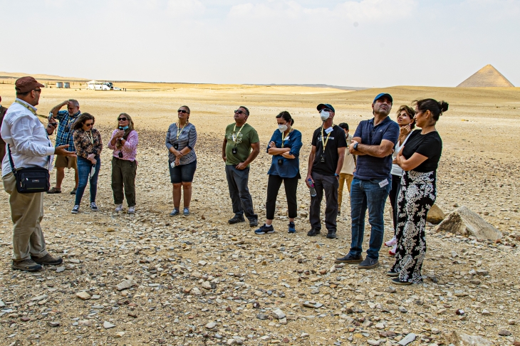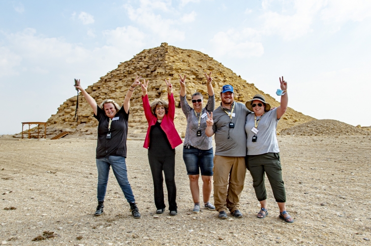 Our guests visited today the Pyramids of Dashour – the Bent Pyramid with its unique construction angle, and the Red Pyramid – both built for one pharaoh, Snefru. Afterward, they went to Memphis to see the ruins of the ancient capital of Egypt and the colossal statue of Rameses II.